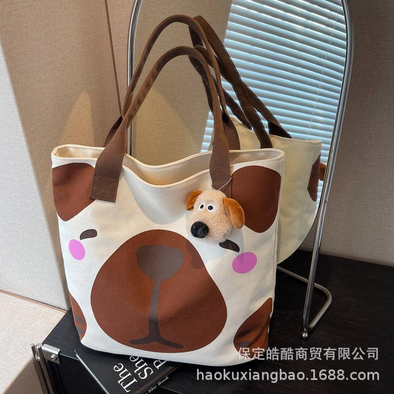 Canvas Bag Women's Large Capacity 2025 New Spring and Summer Versatile Shoulder Bag Casual Cartoon Student Class Tote Bag