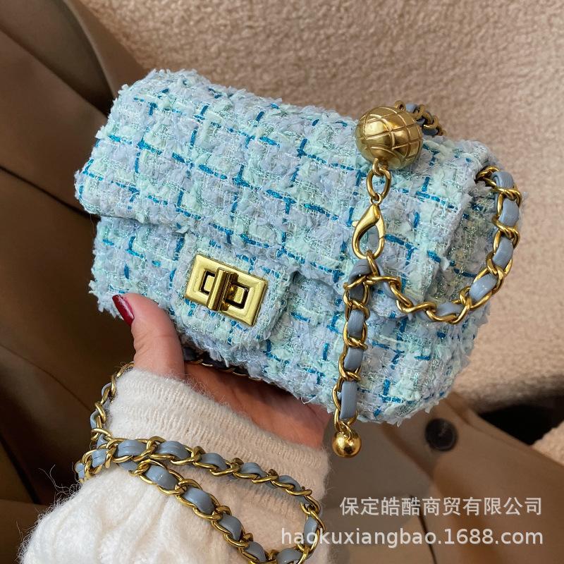 Autumn and Winter Woolen Small Bag Women's 2025 New Trendy Fashion Chain Shoulder Bag Popular Small Fragrant Woolen Small Square Bag