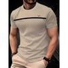 Fashionable Checkered Gradient T-shirt with Light Blue To Black Kasuga Collar and Short Sleeves, Breathable, Perfect for Casual Wear