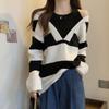 Spring Autumn Loose Stripe Sweater Women Off Shoulder Design Fake Two Piece Pullover Knit Base Layer