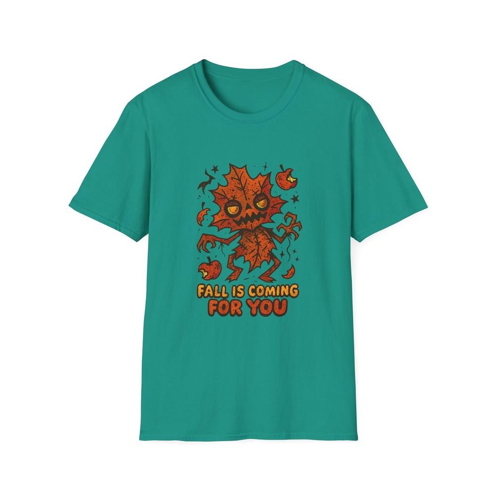 Unisex Softstyle T-Shirt Leaf Monster Glowing Eyes Scary Funny Halloween Fall