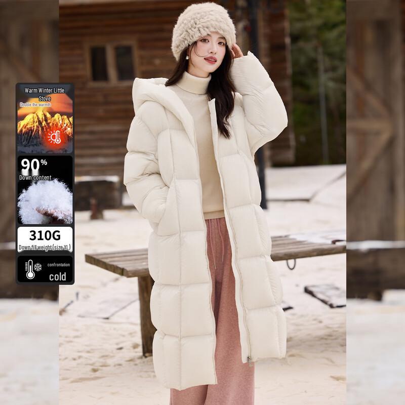 Bailuyu Women's Heavyweight 90% Duck Down Hooded Long Puffer Coat