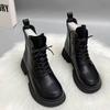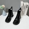 Martin Boots Women's Short Tube Lace-up New Spring and Autumn Single Boots Winter Velvet Medium Heel Thick-soled Short Boots