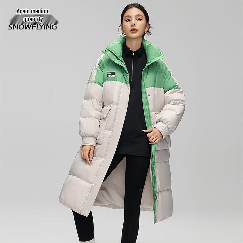 Snowflying Women's Colorblock Stand-Collar Long Down Jacket