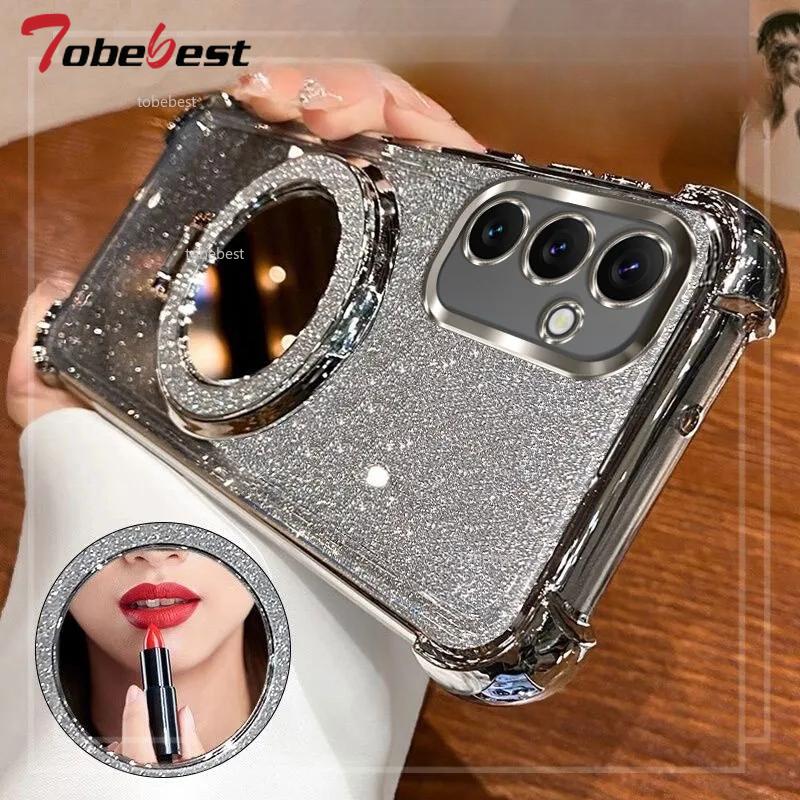Shockproof Plating Case For Samsung Galaxy A17 A07 5G Coque Mirror Magnetic Holder Cover