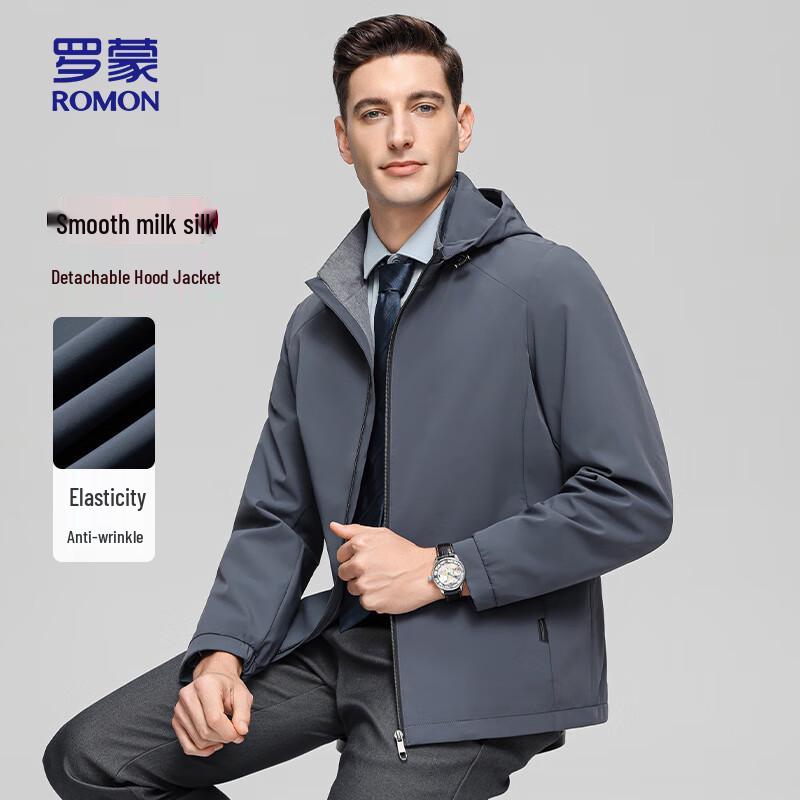 ROMON Men's Hooded Business Casual Jacket with Mulberry Silk Blend