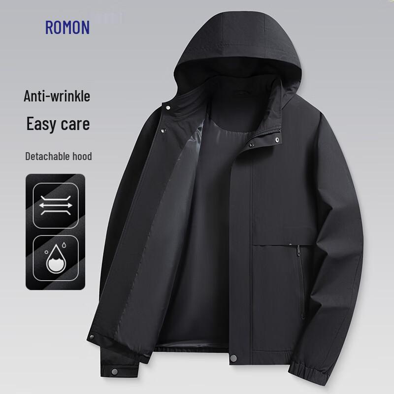 ROMON Men's Detachable Hood Anti-Wrinkle Business Casual Jacket