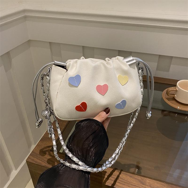 This Year, the Popular Peach Heart Drawstring Chain Small Bag Messenger Bag 2025 New Trendy Fashion Versatile Casual Bucket Bag