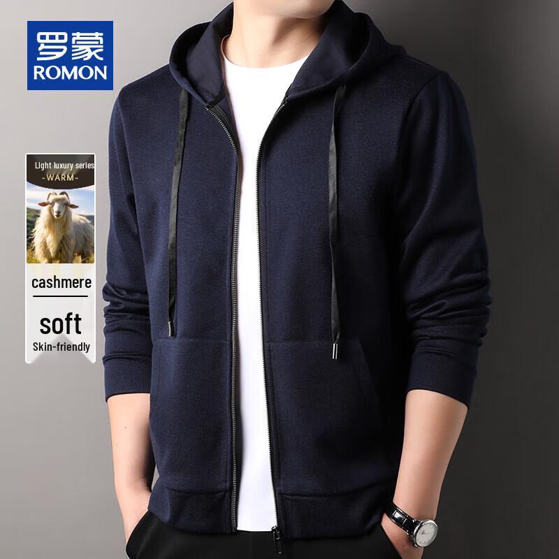 ROMON Men's Cashmere Blend Hooded Cardigan Jacket