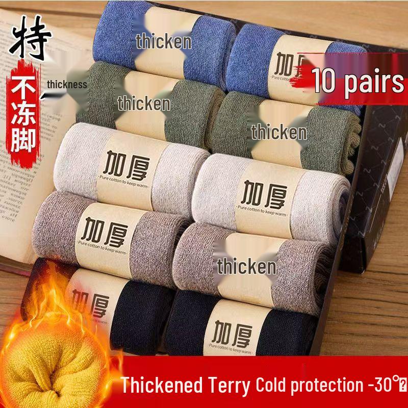Men's Fleece-Lined Winter Terry Socks - Thick, Warm, and Solid Color Mid-Calf Floor Socks for Home.