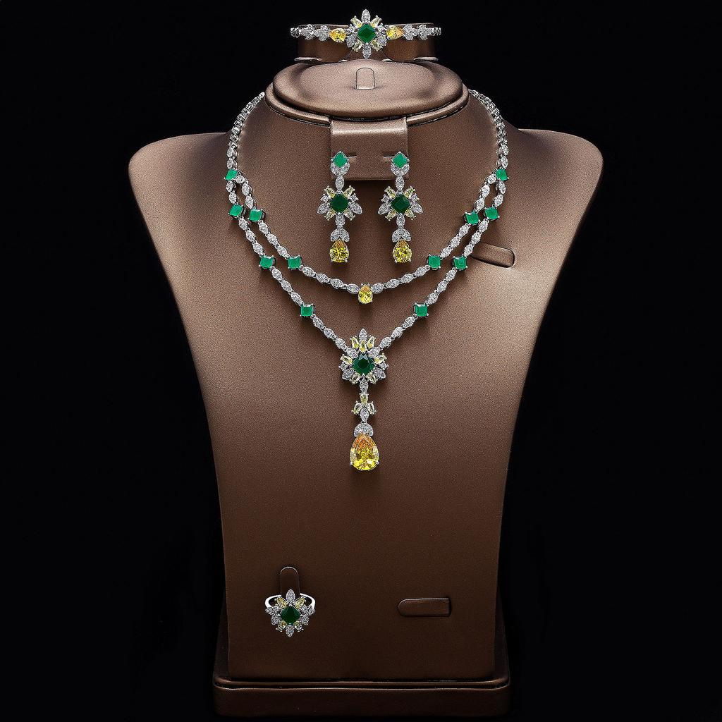 Dress Set Chain Heavy Industry Design Necklace Earrings Set Gorgeous Double-layer Color Zircon Jewelry Set