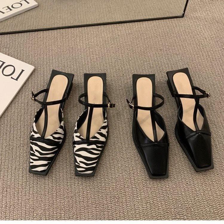 Low Wild Fashion 2025 One-pedal Women's Shoes Sandals Muller Bag Head Half Slippers Heel Wear New Summer Square Head