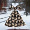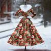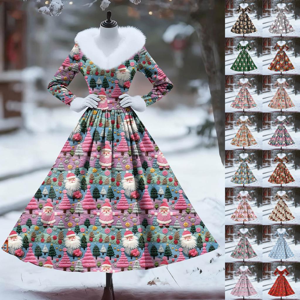 Women's Casual Dress Long-Sleeve V-Neck Patchwork Fleece Christmas Print Dress
