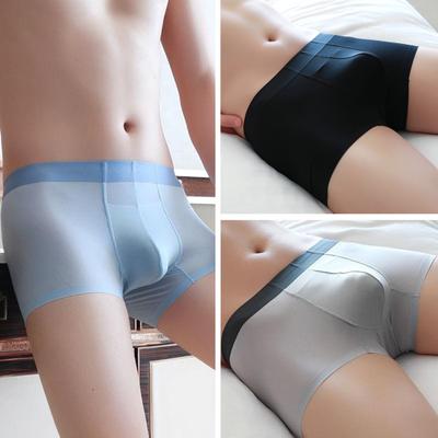 Men Boxer Underwear Elastic Waistband Mid-rise Ice Silk Ultra-thin Shorts Briefs Solid Color Separate Design Panties