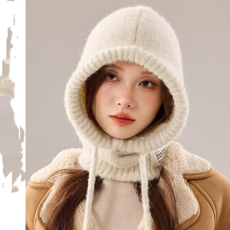 Balaclava Autumn and Winter Women's Thickened Warm Ear Protection Neck Scarf Integrated Knitted Woolen Hat