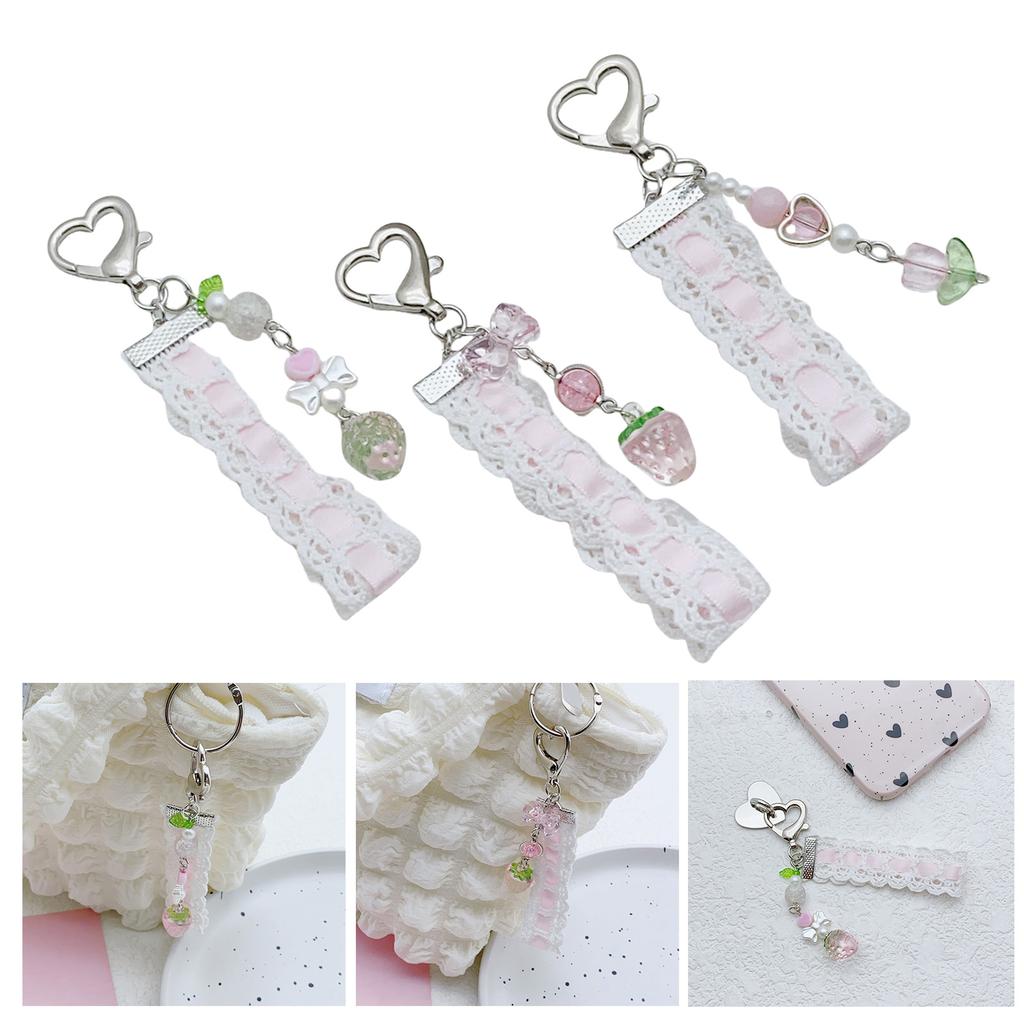 Cute Strawberry and Butterfly Phone Charm Charming Lace and Bead Keychain Phone Strap with Strawberry and Tulip Ornament