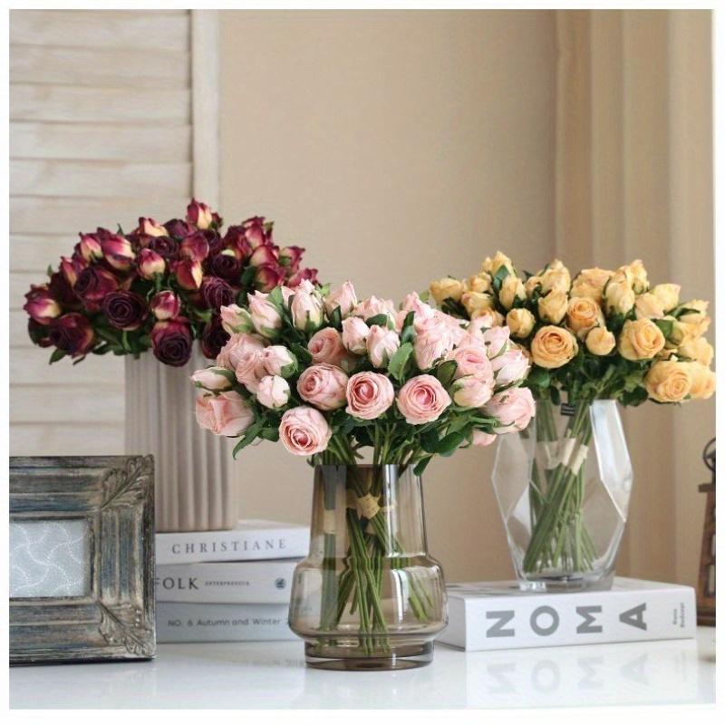 1Pc Multicolor Plastic 6-Stem Retro Burnt Edge Roses, Suitable for Wedding Party Decoration Home Decoration Potted Ornaments