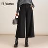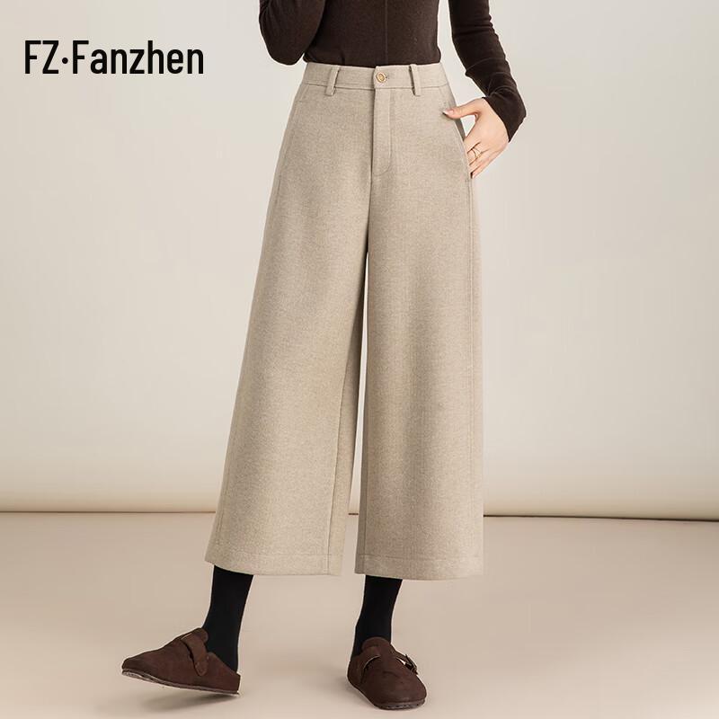 Fanzhen Women's High Waist Wool Blend Wide Leg Cropped Pants