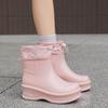 Women's Waterproof Thick-Soled Drawstring Rain Boots - Short, Height-Boosting Rubber Shoes for Outdoor and Kitchen Use