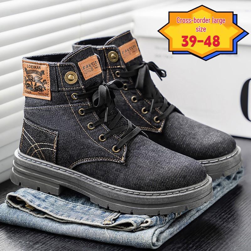 2025 Men's Plus Size Retro High-Top Martin Boots - Casual Denim Ankle Work Boots