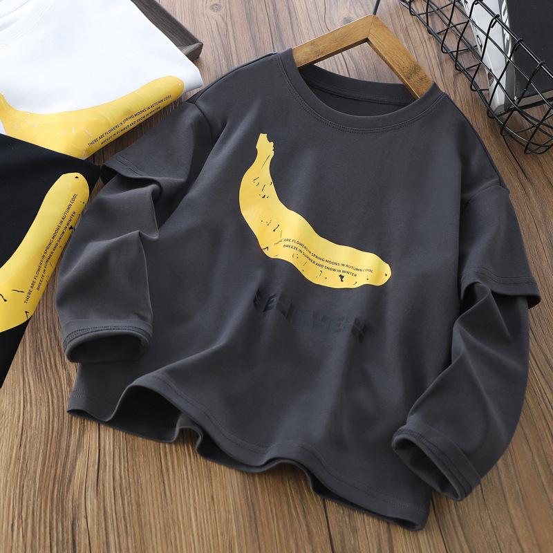 This playful and stylish t-shirt for big kids features a unique banana print design that will add a fun twist to any casual outfit. The clever fake two-piece look gives the illusion of layering without the bulk, making it both trendy and comfortable. With long sleeves, it's perfect for the autumn season, providing just the right amount of warmth. Crafted from high-quality cotton material, this t-shirt ensures a soft and breathable fit, ideal for active days or relaxed weekends.