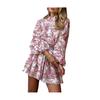Women's Fall Floral Mini Dress Long Sleeve Button Down A-line Swing Dress Stand Collar Short Dress with Belt