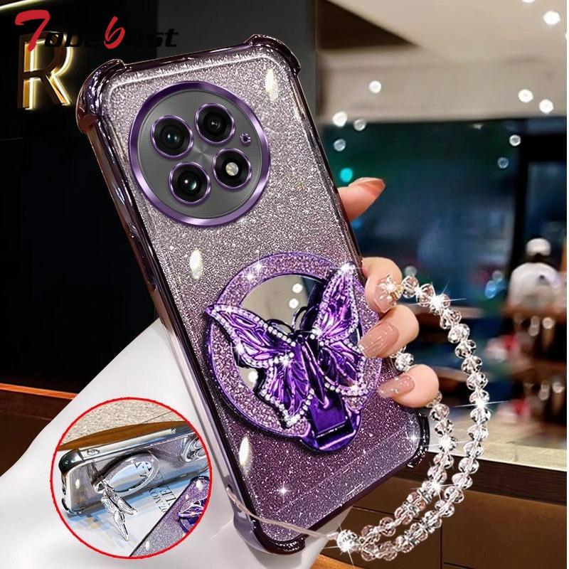 Glitter Butterfly Mirror Crystal Bracelet Case For Oneplus 13 13T 15 12 11 11R ACE 5 3 2 Pro Shockproof Plating Cover
