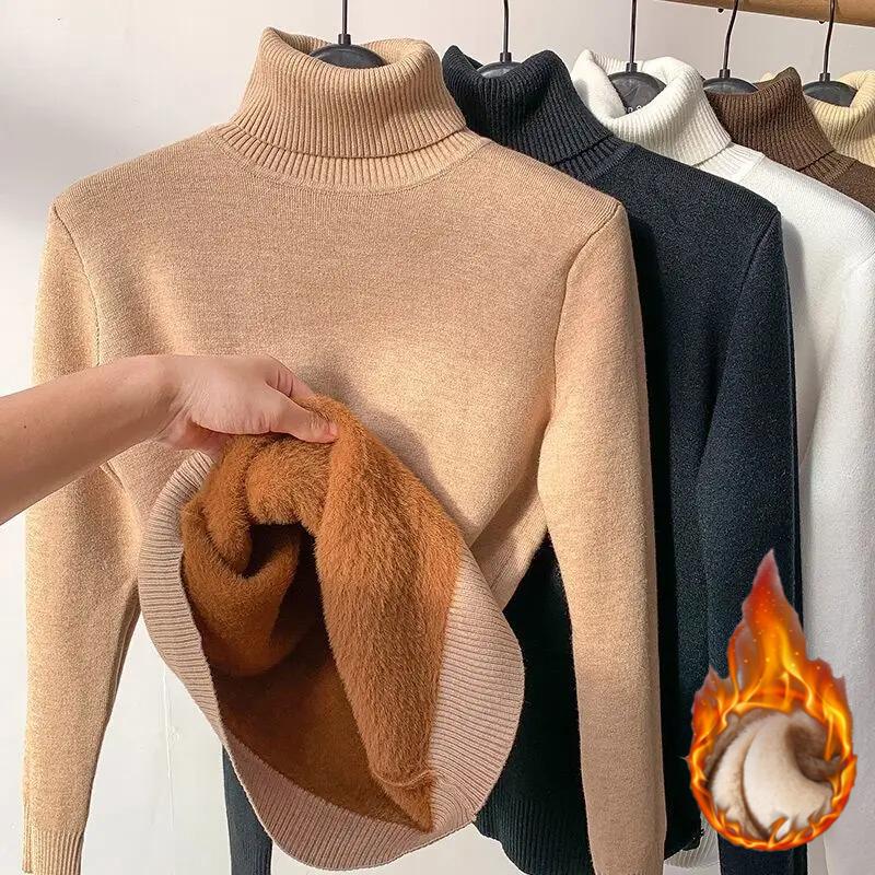 2025 Autumn Winter Women Turtleneck Velvet Thicken Warm Sweater Fleece Thermal Casual Solid Sweater For Women Pullovers