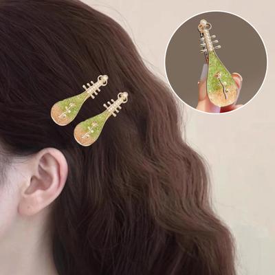 2Pcs Pipa Shape Hair Clips Chinese Style Floral Pattern Faux Pearls Decor Hairpins Festival Cosplay Hair Accessories