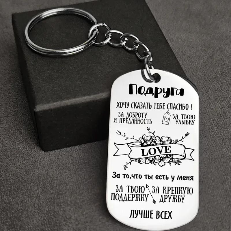 1Pc Stainless Steel Fashion Accessories Engraved Keychain Simple Style Pendant Commemorative Gift Russian Keychain