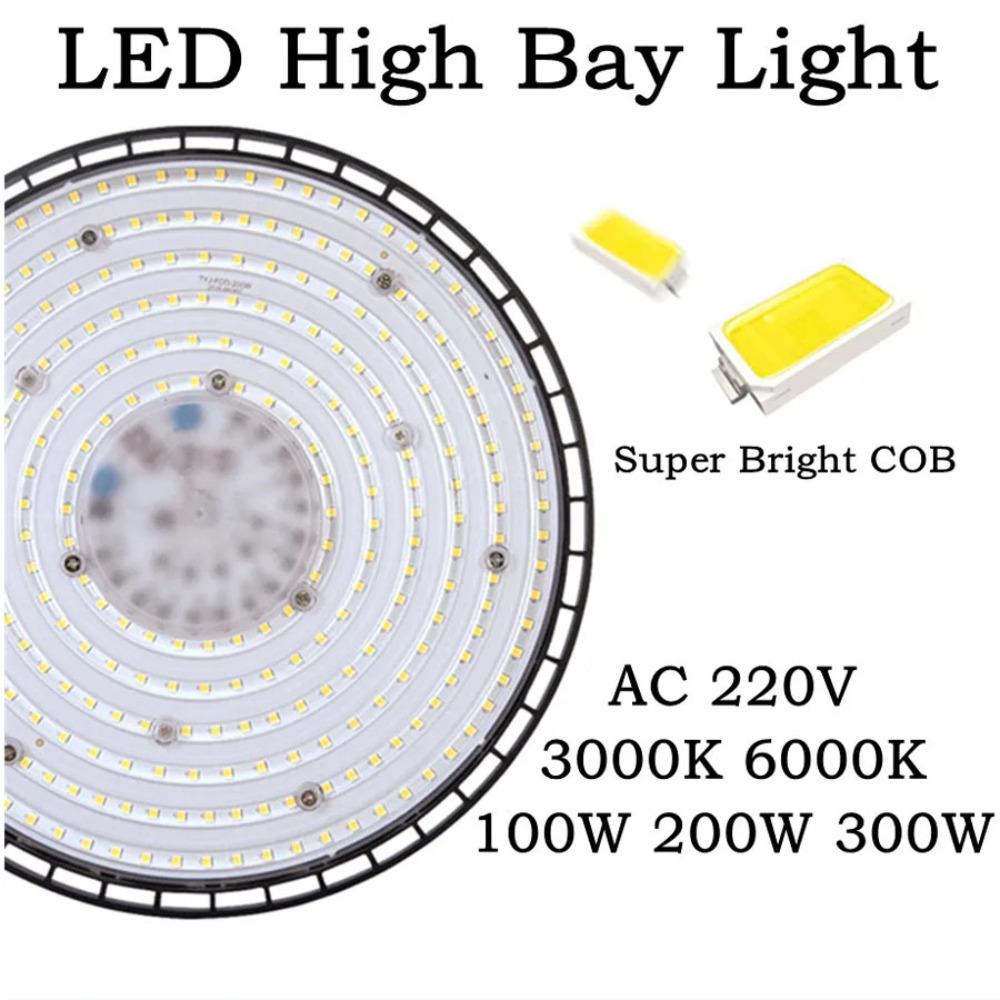 AC 220V Super Bright LED High Bay Light IP65 Waterproof UFO Warehouse Garage Light 100W 150W 200W For Gym Factory Lighting 6000K