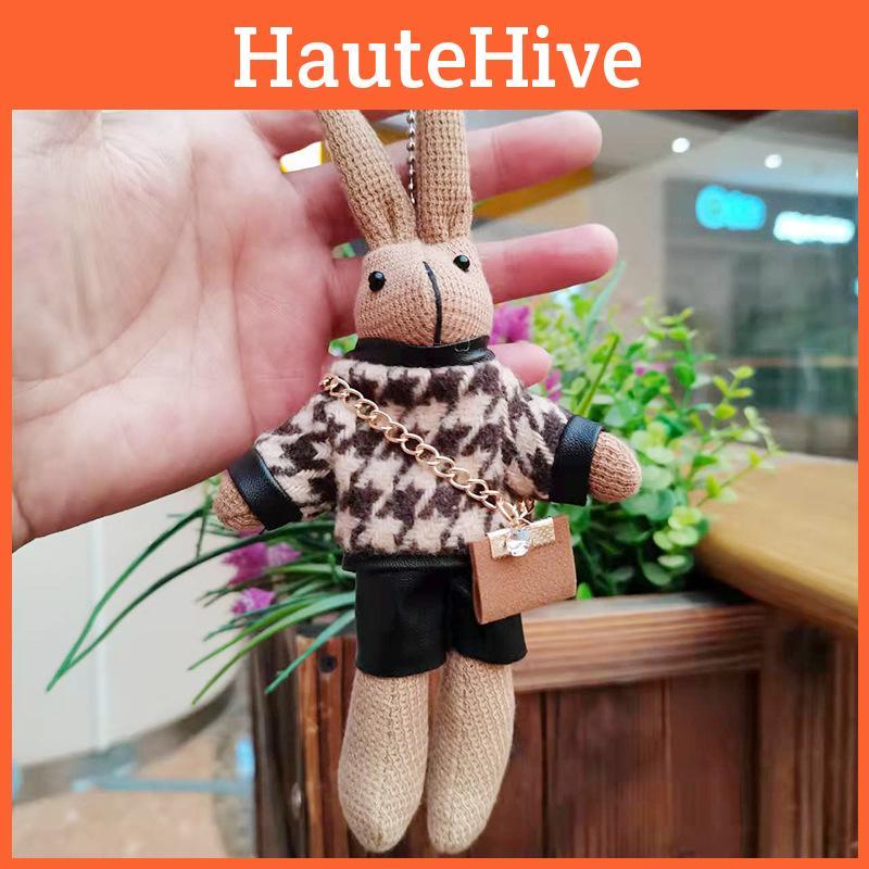 Charming Design: Featuring a unique houndstooth pattern, this plush bunny keychain adds a stylish touch to any bag or keyring.