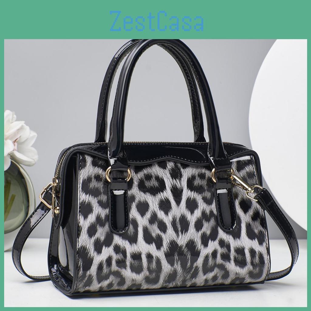 Leopard Fashion Print Color Blocking Women Casual Glossy Shoulder Bag Daily For