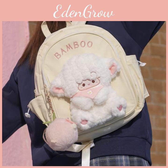 This plush animal backpack features a playful cartoon design. Made of soft polyester fiber and durable nylon, Suitable for students and versatile for casual use, Wipe clean with a damp cloth to maintain its plush appearance.