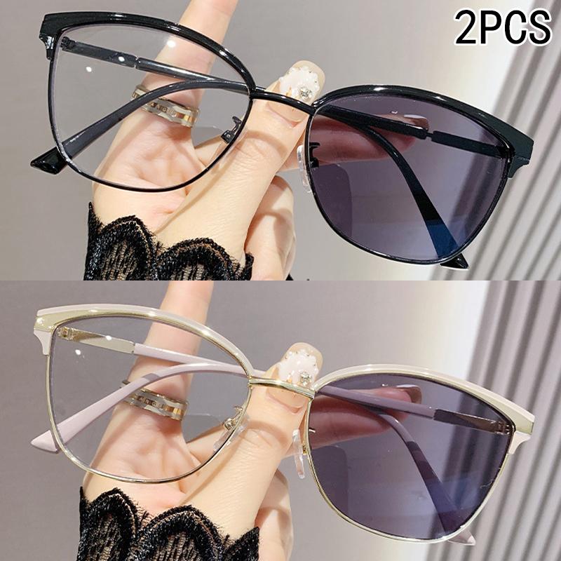 2PCS Photo-sensitive Color-changing Anti-blue-light Large-frame Near-sighted Glasses, Ultra-lightweight 015