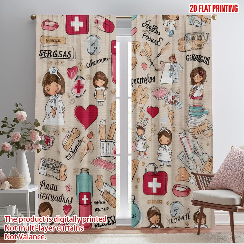 2pcs,2D Plane Printing Curtains Roller Blinds Premium Medical Durable Polyester (without Rod) All Seasons Ldeal for Bedroom,