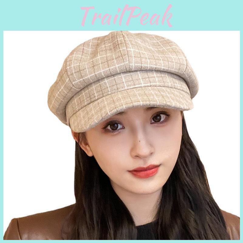 Beret Retro With Grid Printing Design Suitable For Daily Dressing Outdoor