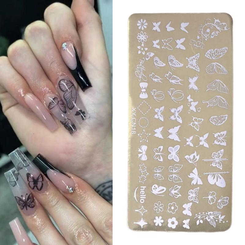 12X6Cm Golden Rectangular Nail Stamping Plates Bowknot Butterfly Flower Cat Designs Nail Art Template For Diy Nail Decor Stencil