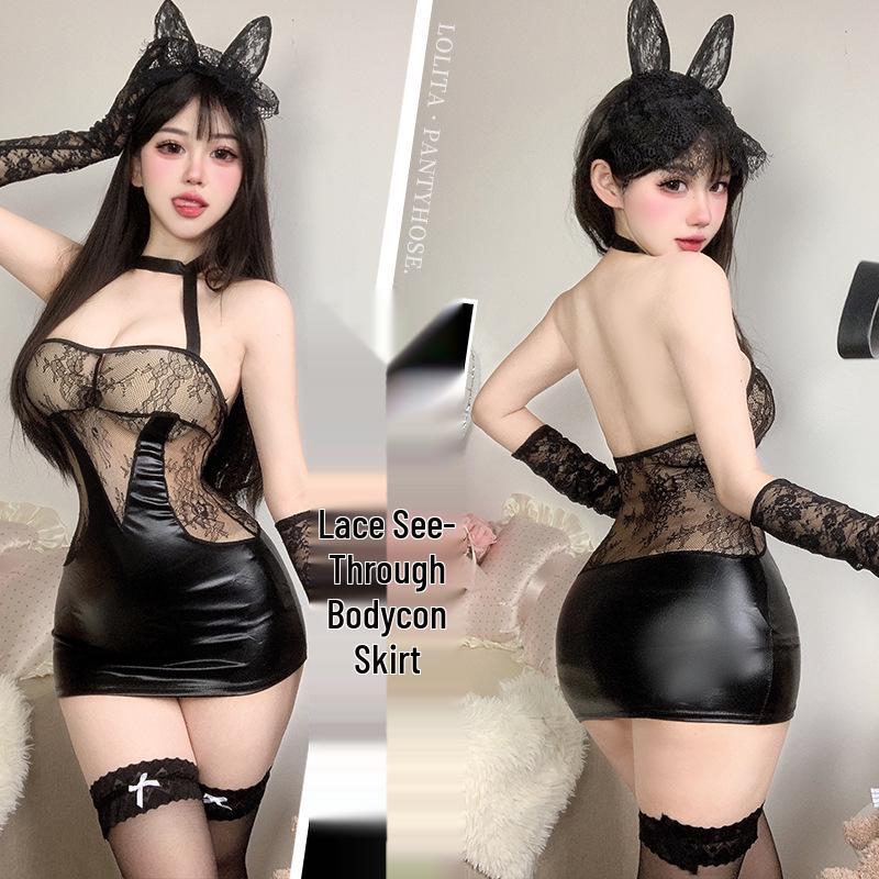 Pure Desire Lace See-Through Halterneck Sensual Lingerie Bodysuit Set for Role Play