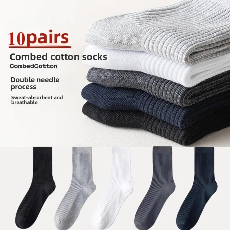 10 Pairs Black Men's Mid-Calf Socks Breathable Absorbent Comfortable Business Solid Color Socks