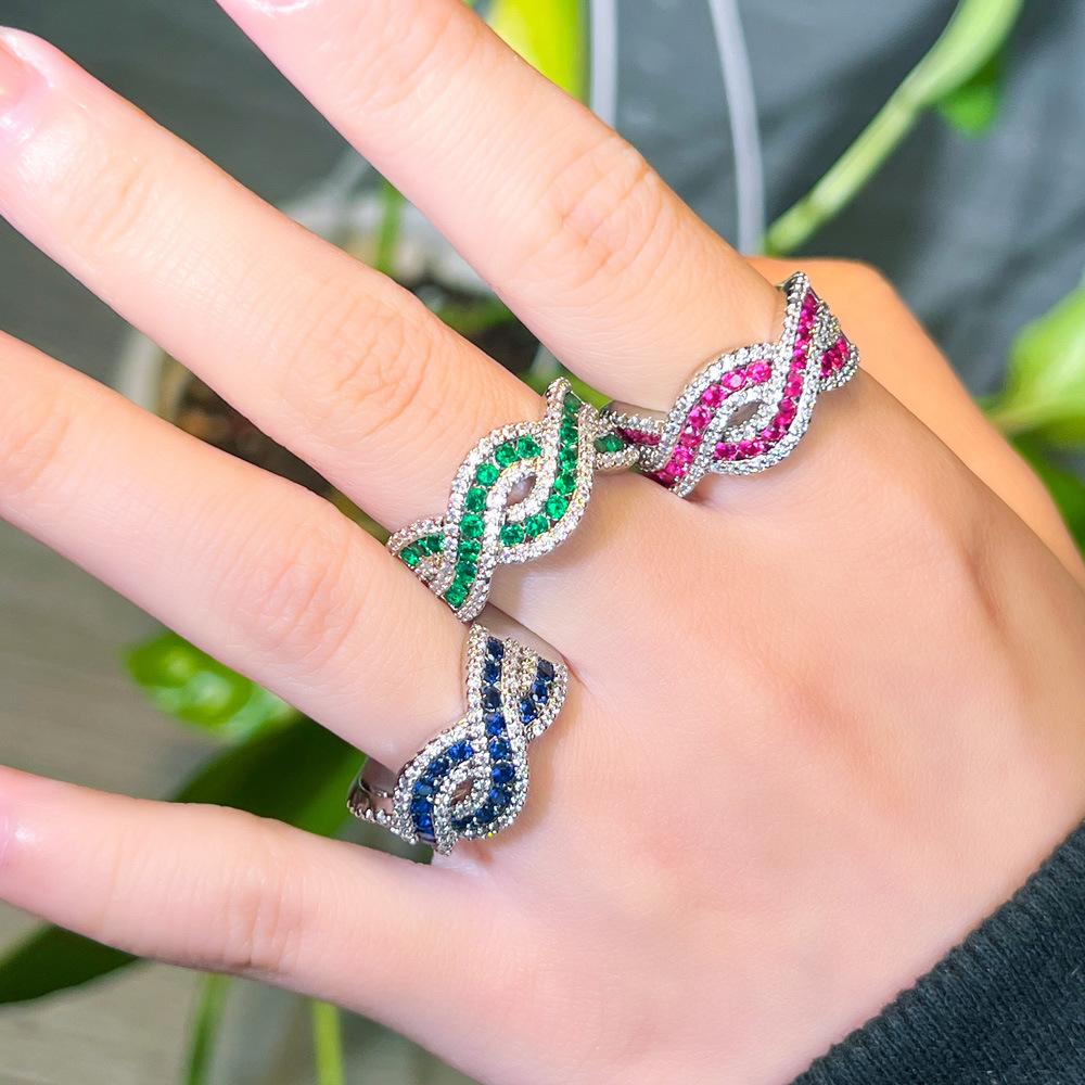 Light Luxury Bright Sparkling Diamond Ruby Ring, Three-Dimensional Cross Full Diamond Open Ring, Personalized Ring, Hand Jewelry.