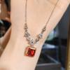 Square High Carbon Diamond Necklace Ring Women'S Ice Flower Cut Yellow Diamond Red Stone Square Bag Colorful Treasure Set