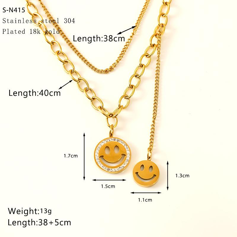 Hip Hop Smiley Face Necklace Female, Multi-Layer Personalized Collarbone Chain Simple Sweater Chain Tide