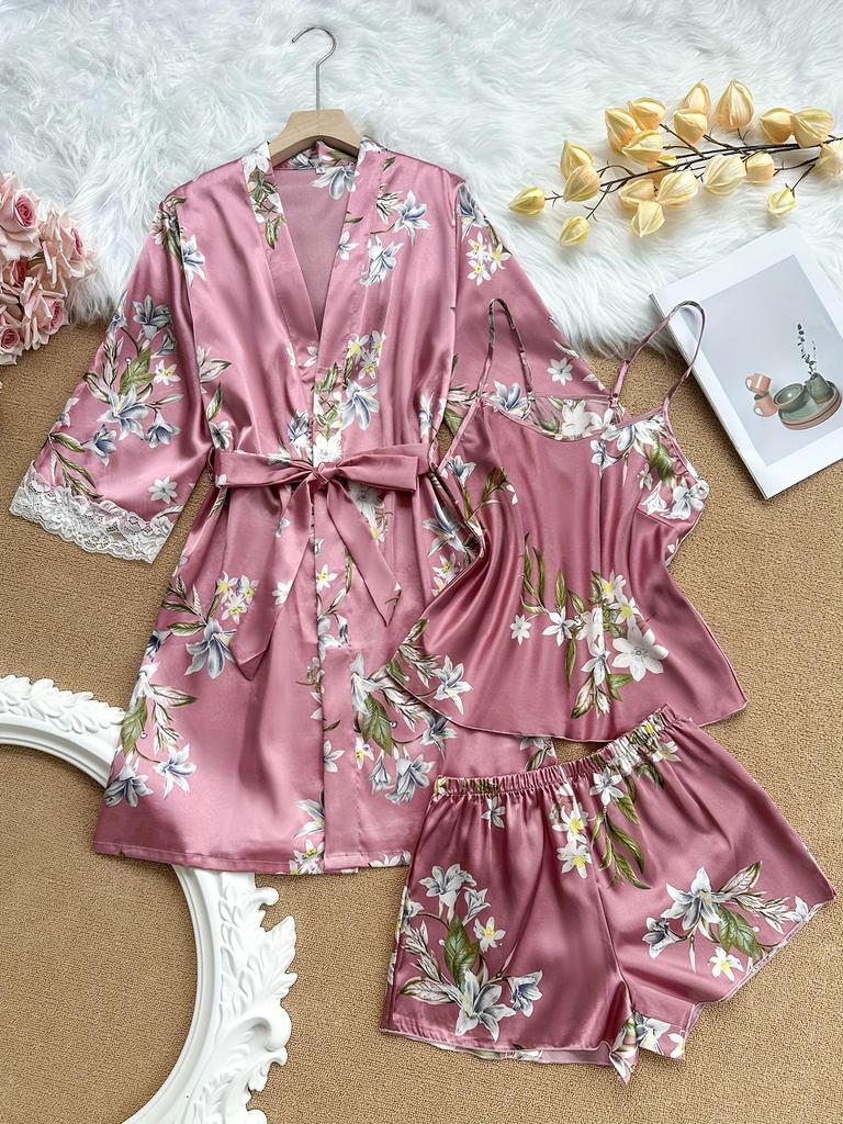 size: L, Top Length: 55.5cm, Top Bust: 96cm, Pants Waistline: 70cm, Pants Hip: 110cm, Pants Length: 31.5cm, Robe Length: 90.5cm, Robe Shoulder: 44.5cm, Robe Bust: 118cm.
