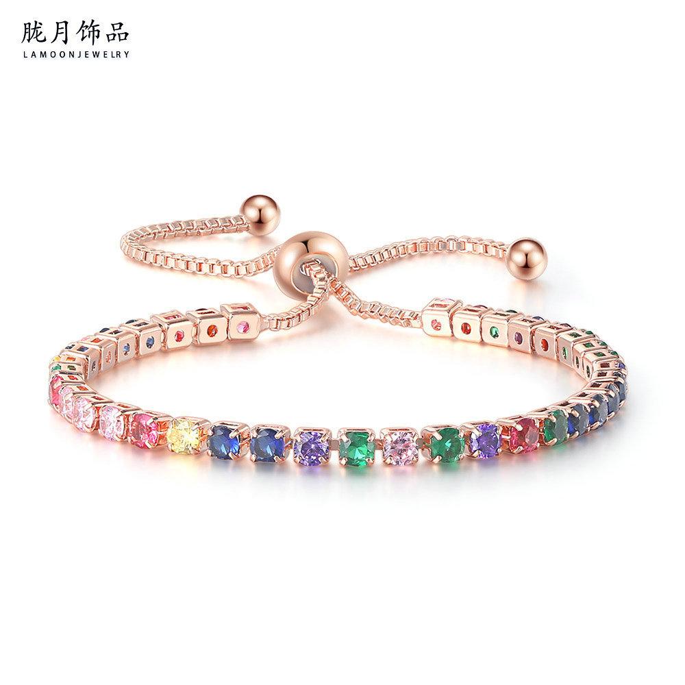 Misty Moon 3Mm Color Round Zircon Single Row Full Diamond Adjustable Crystal Bracelet Women'S Jewelry
