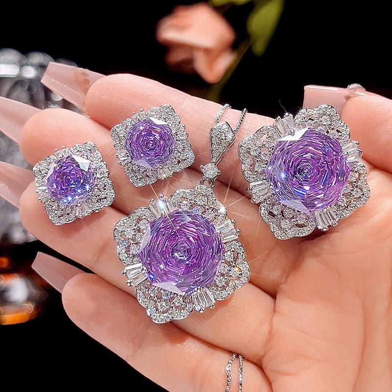 Jewelry Copper Bottom Gold-Plated Simulation Millennium Cut Roland Temperament Set Main Stone 16-10M