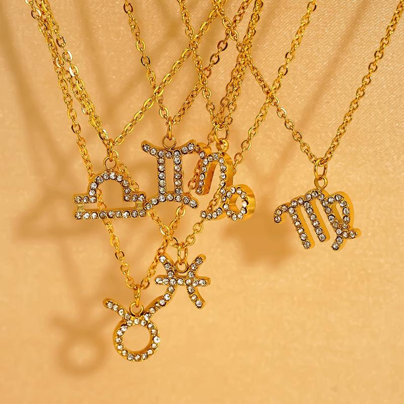Light Luxury Micro-Inlaid Zircon Twelve Constellations Titanium Steel Necklace Women'S Gold Collarbone Chain Spot