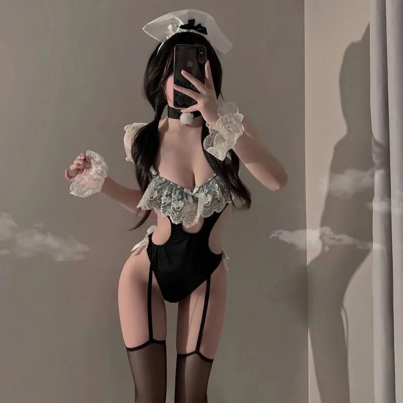 Sensual Lace Suspender Maid Costume - Seductive Cosplay Onesie for Small Chest