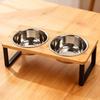 Elevated Cat Bowls 15° Tilted Raised Cat Food Bowls with Wooden Stand Anti Vomiting 2Stainless Steel Bowls for Cats and Puppy