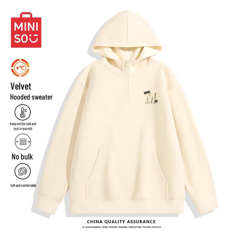 MINISO Men's Winter Heavyweight Half-Zip Hooded Fleece Sweatshirt